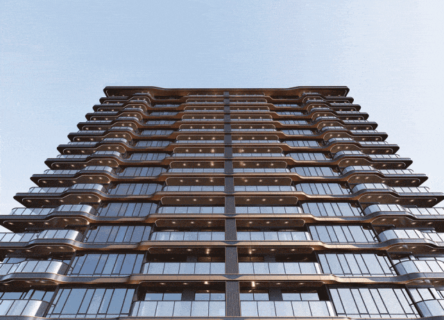 所有户型均采用高定LOW-E全玻璃幕墙,搭配香槟金色金属铝板,打造出现代简约而不失高贵的建筑外观。室内装修选用嘉格纳、高仪、劳芬、博洛尼等国际一线品牌,彰显尊贵品质。