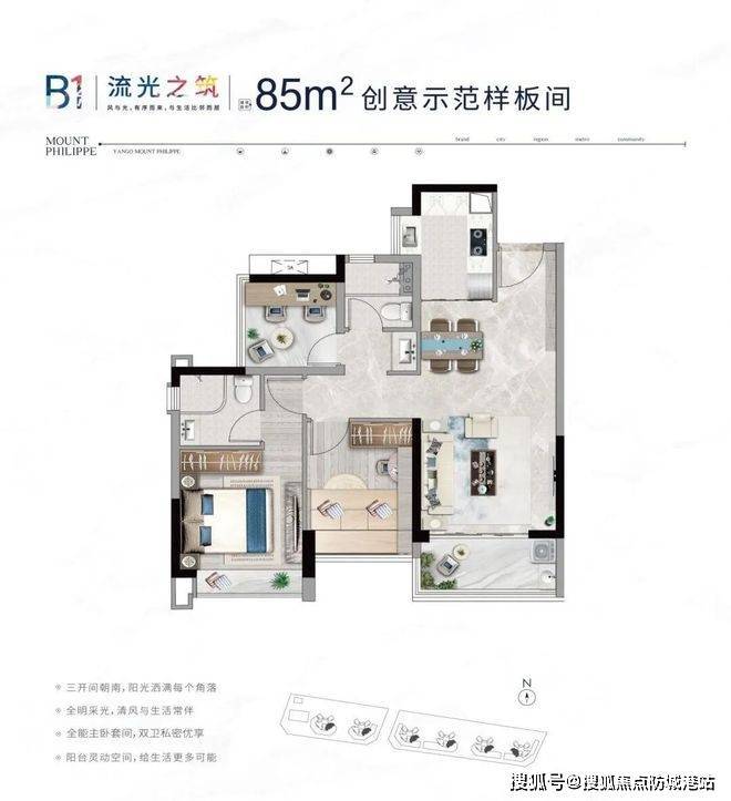 住宅户型设计科学合理,二房、三房及四房布局充分考虑空间通透性与生活动线,南北向采光充足,客厅与卧室相互独立,保障居住舒适性。主卧配备套间及飘窗设计,增加居住舒适感及采光效果。