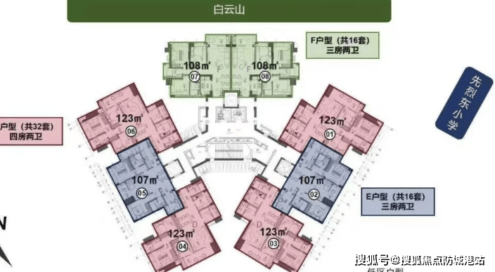 - 107–123㎡三房 | 2梯8户 | 适合预算有限但需学区+地段的家庭;