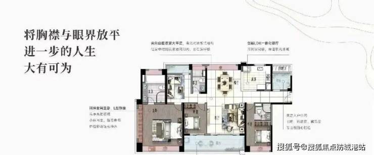 建面140平四房,南北对流设计,LDK一体化联厅,,主卧270度景观飘窗。