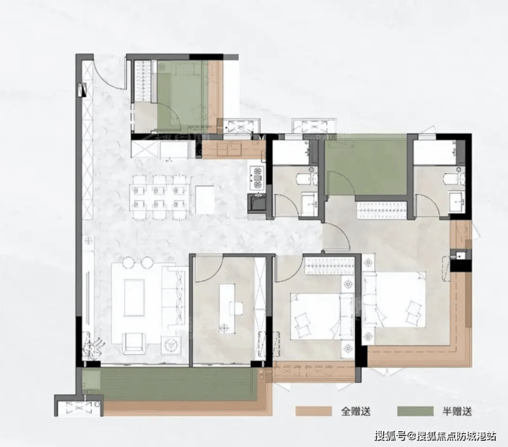 汀澜峯境 118㎡五房两厅:挑高设计,横厅布局,动静分区