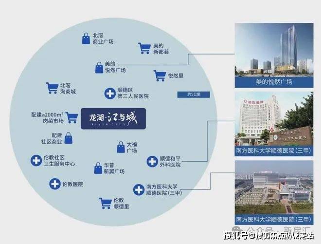项目周边的配套设施同样令人瞩目。龙湖·江与城坐落在顺德的主城区,近享约5公里内的成熟生活圈。周边7大商业广场环绕,如北滘商业广场、保利顺德里、华侨城PLUS等,为居民提供了丰富的购物、餐饮、娱乐选择。教育资源方面,附近有北海小学、汇贤实验中学、伦教中学等10所知名学校,为孩子的教育提供了强有力的保障。医疗资源方面,南方医科大学顺德医院、顺德妇幼保健院两大三甲医院环伺,保障居民的健康需求。可见,项目的配套设施非常完备,能够为居民提供一个便捷、舒适的居住环境。