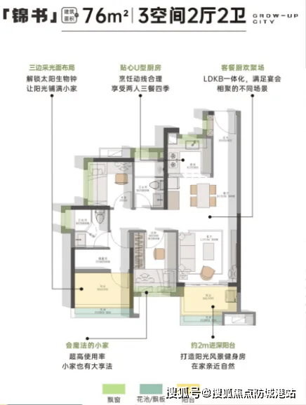 五、户型产品能打:76-126㎡全南向三至四房,得房率超100%