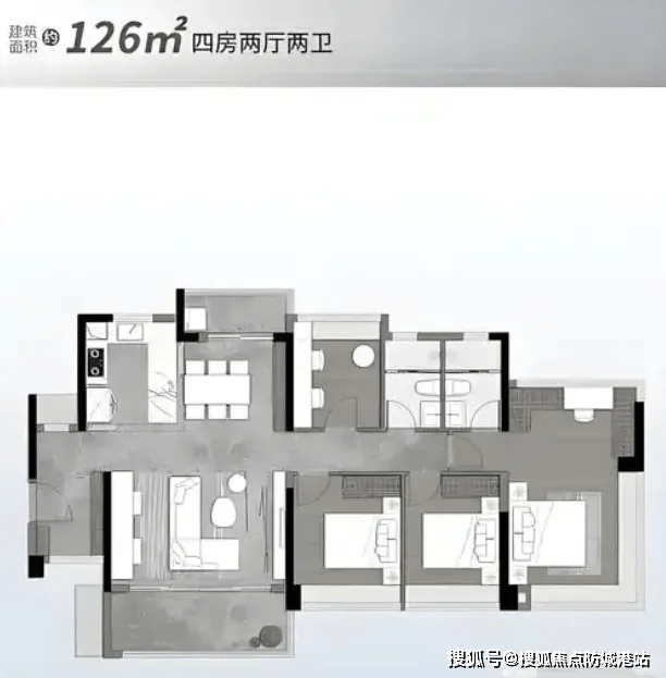 126㎡四房两厅两卫则是大家庭的优选,总价300万起,户型方正通透,预留了灵活改造空间,能满足多代同堂的居住需求。这个户型空间宽敞,能为家庭成员提供充足的私人空间,非常适合三代同堂的家庭居住。