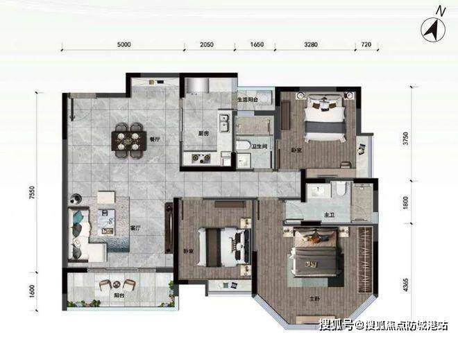 97㎡三房两厅一卫:在空间尺度上更为宽敞,三房设计可满足家庭不同阶段的需求。客厅与餐厅一体化设计,营造出开阔的公共活动区域,方便家庭聚会与休闲娱乐。主卧空间较大,可放置大型衣柜,满足收纳需求。次卧和书房可根据家庭实际情况灵活使用,如儿童房、老人房或工作学习空间。卫生间干湿分离,提升生活品质。阳台连接客厅,采光通风俱佳。