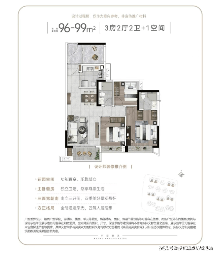 (一)户型设计:高使用率 + 全南向,适配多元改善需求