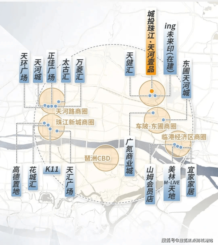 同时,项目周边环绕珠江新城、天河城 - 太古汇、金融城、奥体商圈四大成熟商圈,距离天河城 - 太古汇约 5 公里,距离珠江新城约 5.5 公里,驾车或乘坐地铁均可快速到达。此外,项目自身规划有少量社区商业配套,将引入便利店、生鲜超市、社区服务中心等业态,进一步完善日常购物需求。