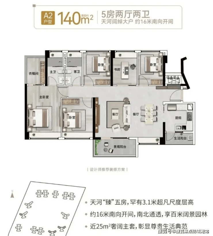 140㎡五房户型则面向改善家庭,南北对流设计,配备约32㎡阔绰客餐厅与16米南向大开间,空间感十足。双阳台设计兼顾观景与家政需求,让生活与美景两全。该户型总价650万起,能够满足多胎家庭的居住需求,让每个家庭成员都能拥有独立的空间。