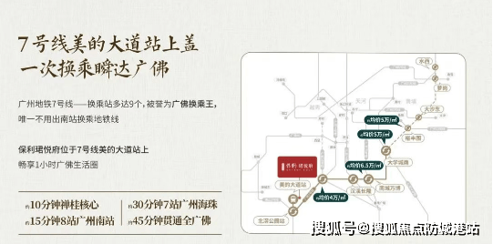 保利珺悦府地处地铁7号线美的大道站D出口,交通极为便捷。从这里出发,仅需8站即可到达广州南站,快速连接番禺万博、汉溪长隆、广州大学城等地。此外,通过1站换乘佛山地铁3号线,可直达佛山副中心大良、佛山新城、季华商圈等重要区域。双地铁交汇的优势,使得出行更加灵活高效。