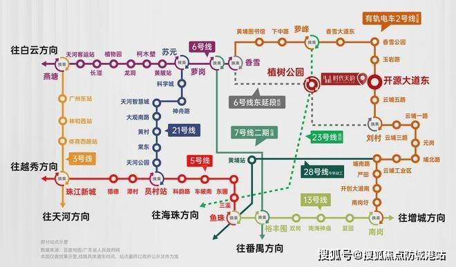 交通条件逐步完善。目前距离最近的地铁香雪站约 3.8 公里,步行不太现实,但小区门口就是黄埔有轨电车 2 号线开源大道东站,业主乘坐有轨电车 5 站就能抵达香雪,接驳 6 号线,可直达天河、海珠、越秀等地。而且规划中的 6 号线东延段和 23 号线会在附近的植树公园站交汇,未来交通便利性将进一步提升,无论是日常通勤还是出行游玩,都能为业主提供更多选择。