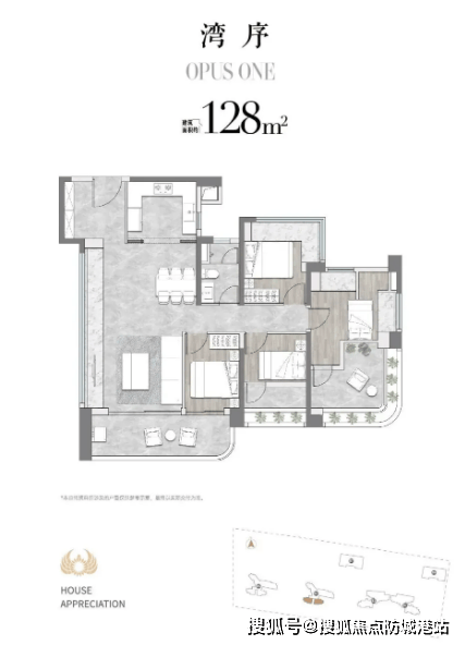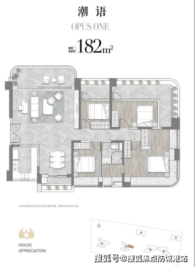户型涵盖 128~595㎡多种面积段,采用新规设计,得房率超 100%,是白鹅潭江景房中首个新规产品。住宅以龙型布局环抱内港湾,实现 IMAX 环幕瞰江视野,每一户均能享受一线江景。