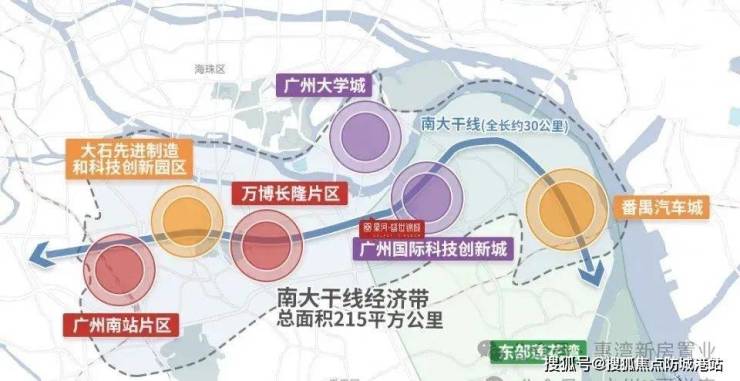 地处南大干线经济带上的番禺黄金财智走廊,不仅是连接珠三角东西岸的重要发展走廊,更串联了番禺多个关键经济台,如广州南站、长隆万博、国际创新城以及汽车城板块。