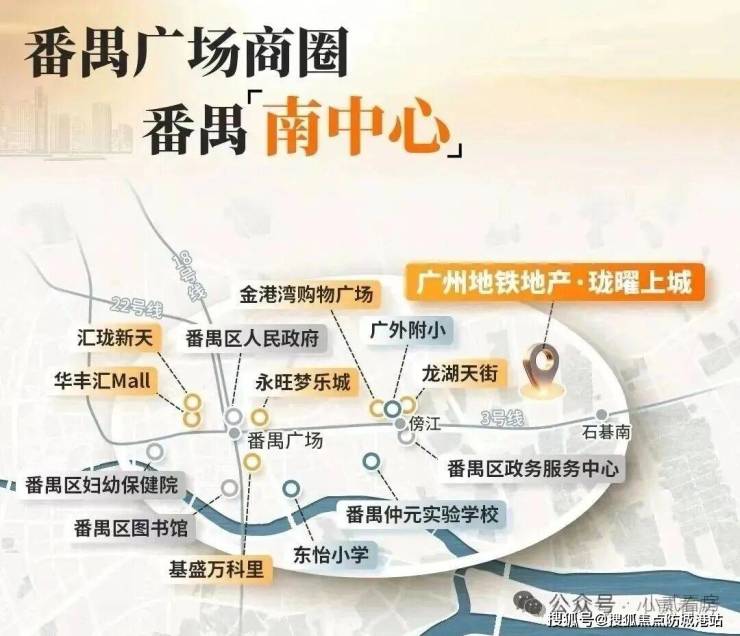 项目西侧紧邻金龙城财富广场,周边已形成成熟的底商氛围,各类生活配套一应俱全,从日常生鲜采购、生活用品购买,到餐饮就餐、亲子娱乐,都能轻松实现,浓厚的生活烟火气让居住更具温度。距离项目两站地铁的番禺广场,是番禺配套最成熟、最完善的核心区域,作为番禺区政府所在地,这里汇聚了全区最优质的行政、医疗、文化、商业资源。番禺广场拥有对标城市核心的公共空间,还有文化馆、图书馆等两馆一中心高能级文化配套,满足业主精神文化生活需求;商业方面,永旺梦乐城、基盛万科里等大型商业综合体齐聚,涵盖高端百货、品牌服饰、特色餐饮、影院剧场、亲子乐园等全业态商业,无论是家庭聚餐、朋友聚会,还是周末购物、休闲娱乐,都能找到合适的场所。