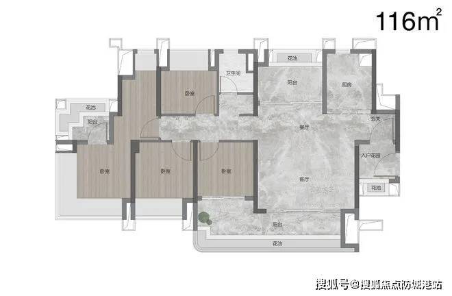 125㎡四房:双阳台设计,客厅开间达4.2米,适合改善型需求;