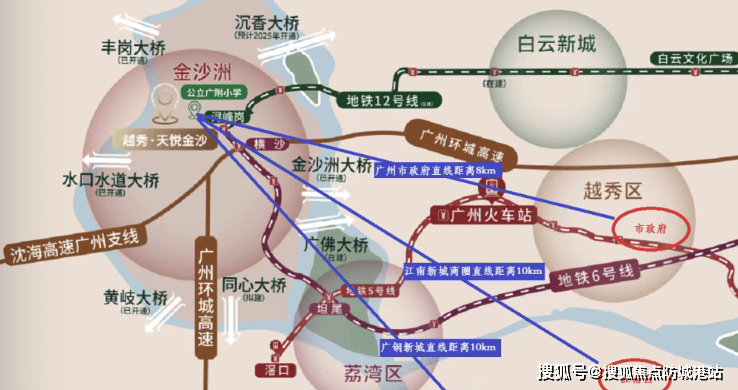 项目紧邻环洲三路、彩滨北路,15分钟可达广钢新城、白鹅潭CBD,20分钟抵达白云新城。