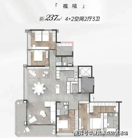 建面约237方4+2空间2厅3卫,享受270°IMAX级巨幕景观阳台,尽揽城市江、湖、城磅礴景观;不仅做到房房瞰湖,看湖还有N种方式,比如,躺在床上就能赏湖景,打个麻将也可以望湖,在到岛台前忙碌更可以望湖,就连洗澡都可以享受莲花湾中心湖美景......