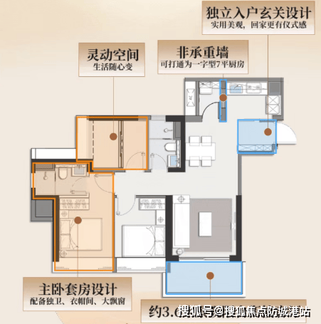 87平小户型:虽然面积不大,但设计精巧,采用少承重墙化设计,次卧可打通或隔开,增加空间灵活性。主卧配有独立卫浴,提升了私密性。