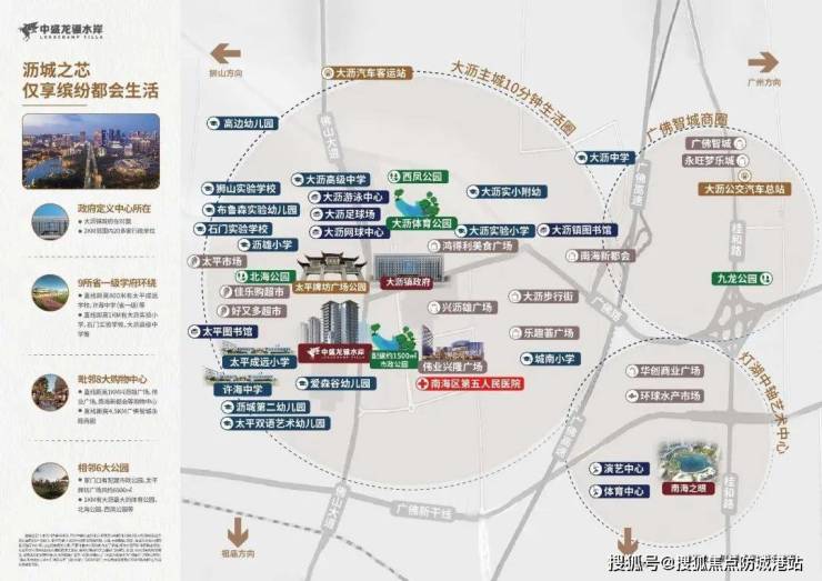 政府所在 15分钟醇熟生活圈——对面即为大沥镇政府,周边行政、商业、教育、医疗等资源高度集中。2公里范围内拥有8个购物中心、1家三甲医院、5大公园,整个板块的配套设施成熟完善,无需等待即可享受都市生活的便利。