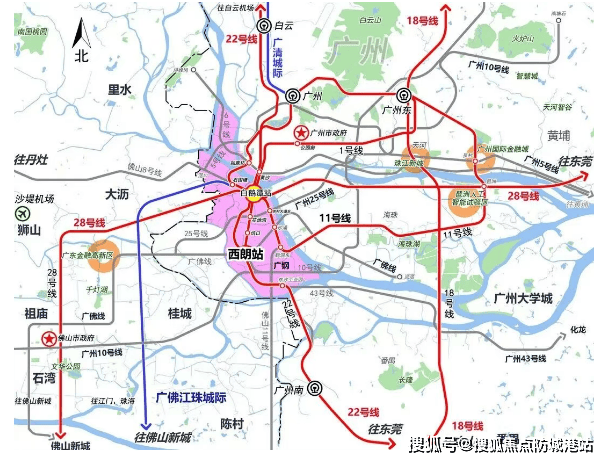 在寸土寸金的都市核心区,交通通达度往往决定了一个项目的价值上限。鹅潭一号之所以能成为湾区精英的争藏之地,很大程度上得益于其周边令人咋舌的轨道交通网络。这里并非简单的“地铁上盖”,而是真正意义上站在了广州轨道交通网络的“十字路口”。随着2026年的到来,区域交通格局已全面兑现,形成了以地铁11号线和22号线为骨干,多达15条轨道线路交织的超级枢纽。