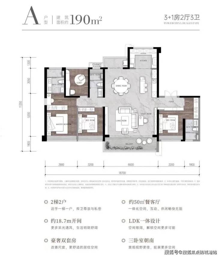 然后190方的A1户型,在即将开售的1号楼,1号楼为3梯4户,01/02为120方的双开门电梯,03/04为190的专梯到户。