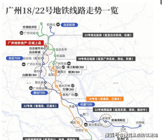 22号线则是广州唯一串联海陆空的高速地铁线,串联白云机场、广州南站、南沙客运港等三大交通枢纽,打通城市脉络节点,直达大湾区六大核心枢纽,一小时内可畅行大湾区主要城市,为业主的商务出行、旅游出行提供极大便利。目前,白云城市中心站已封顶,线路建设稳步推进,未来通车后将彻底激活项目的交通价值。
