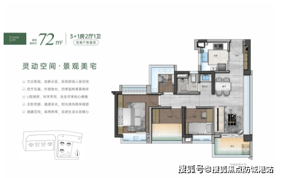 一期在售户型为72-88-105㎡四房户型,均为精装交付,交楼时间为2025年12月。其中,72㎡四房户型堪称刚需神户型,在同区域内实属罕见,极致挖掘空间潜力,实现小面积多功能布局,完美适配单身青年、新婚夫妻或三口之家。