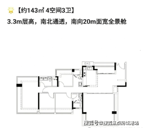 南地块:共8栋,其中1-4栋为15层塔楼,2梯3户,中间户型约120平方米,两边户型约140平方米;5-8栋为32层塔楼,户型设计与北地块保持一致,面积段为72-85-105-123平方米。