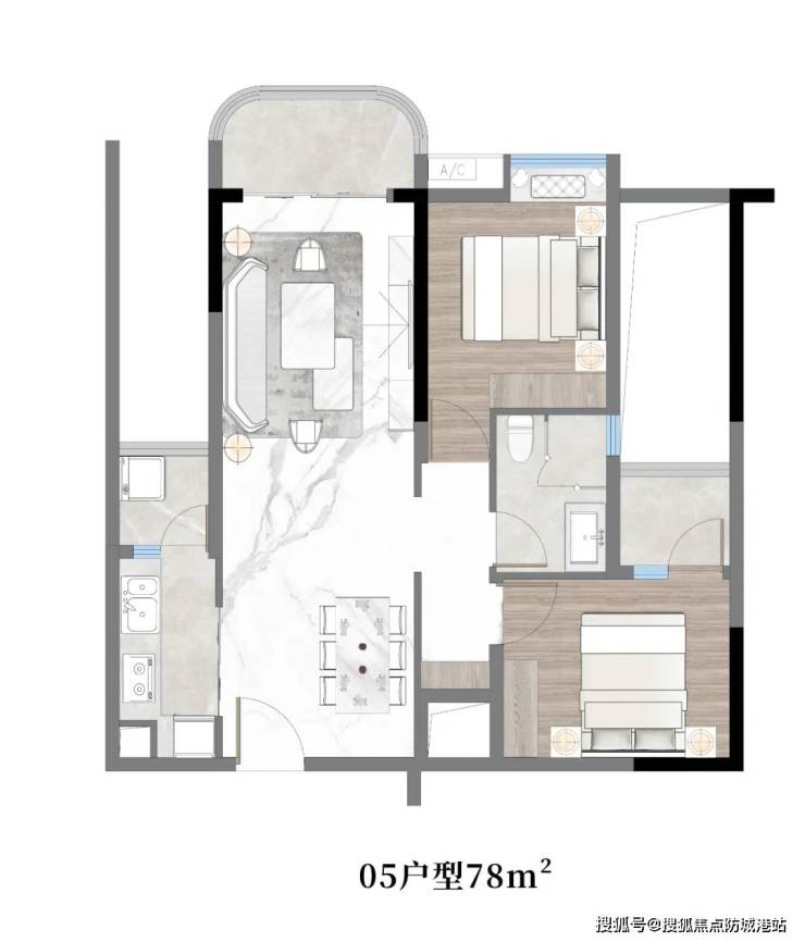 约78㎡,两房两厅一卫:经济实惠,适合首次置业者。