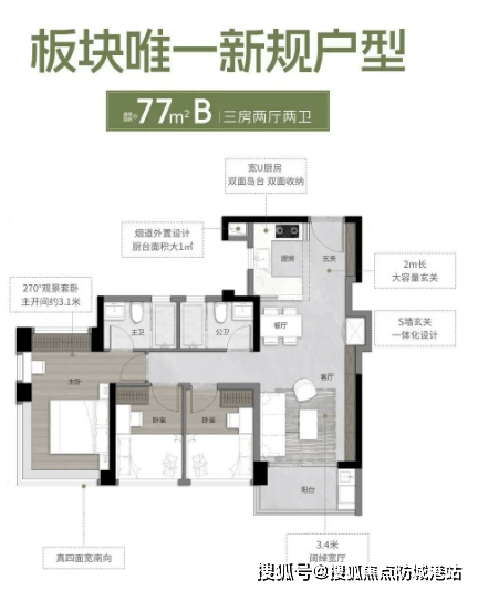 万科・檐屿城主推建面约 77-135㎡三至四房,作为南站万博首个新规产品,实用率超 120%,最高可达 138%,在整个板块具有唯一性。