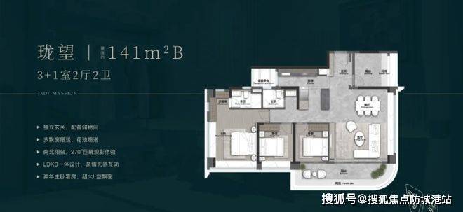户型设计独具匠心,建面约 123㎡创新性打造 4 + 1 房,四开间朝南,约 6.5 米双面宽景观阳台,采光通风极佳。“魔方空间” 让设备空间、厅卧可灵活变动,厅卧合并能改成约 62㎡LDKG 大方厅,还能南望海珠湿地公园,享受大平层般景观。约 131㎡户型入户拐角玄关设计,南北对流双阳台,南向阳台长约 7.5 米,搭配 LDKG 一体化,拓宽生活场景。主套 L 型衣帽间与环幕大飘窗,尽享窗外美景,在同面积段户型中优势明显。