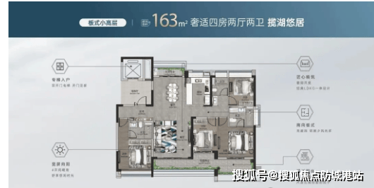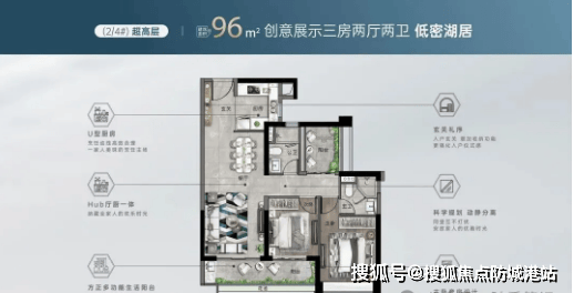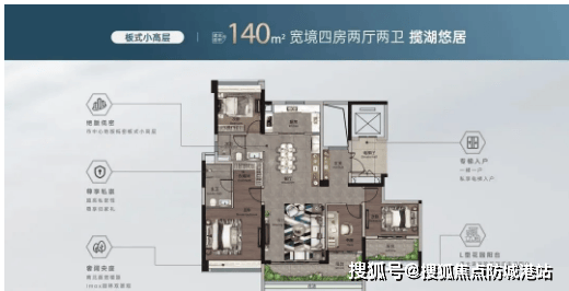 超高层户型包括96㎡三房、138㎡/141㎡四房,3梯4户或3梯6户设计,兼顾舒适性与便捷性。96㎡三房户型紧凑实用,布局合理,无浪费空间,观景阳台与卧室飘窗设计,让业主在室内就能欣赏到湖山与园林景观,适合年轻刚需家庭。138㎡/141㎡四房户型则主打高端改善,阔绰的空间尺度搭配精致的细节设计,彰显品质生活。客厅采用大面宽设计,连接超大观景阳台,湖山盛景尽收眼底;主卧套房设计,配备独立卫生间、衣帽间与观景飘窗,打造私密舒适的休憩空间;厨房采用U型布局,操作空间充足,满足日常烹饪需求。