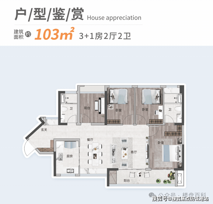 户型面积:85-103㎡三至四房
