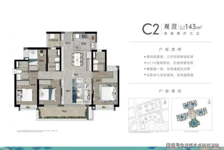 一共9栋楼,位于整个项目C位,距离地铁约500米,东侧有4万方的大脚印公园,组团北侧就是广铁一中学校与青少年宫。户型涵盖75方.86方和88方的三房,105方.114方.125方.142方的四房。使用率高,加赠送基本在95%以上,2024年底-2025年6月份收楼。
