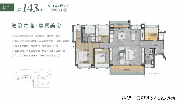 定位改善客群,110㎡以上户型均采用更宽绰的格局,部分单位可享双阳台、南北对流、主卧衣帽间等高端配置。143㎡顶配户型更是做到四开间朝南,视野开阔,彰显身份感与生活格调。