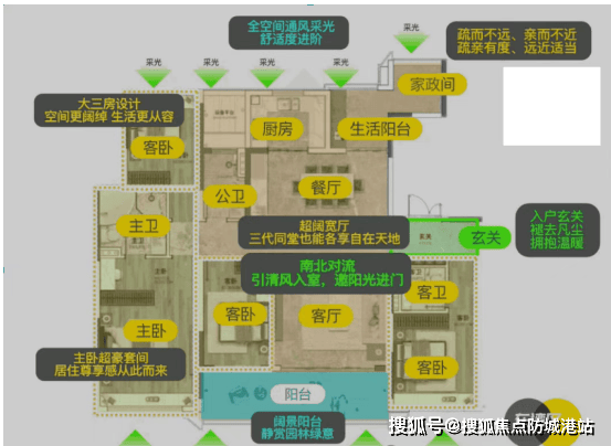 即使是刚需户型,项目也做到了 “极致性价比”:91㎡三房为 2 梯 4 户设计,实现全屋对流(同片区 98㎡户型多仅能南向望花园),通透性更佳,且在面积、总价与舒适度间做到平衡;106㎡3+1 房则以横扩阳台与大空间布局,满足二胎家庭或三代同堂的居住需求,让刚需价格也能享受 “阔境空间”。