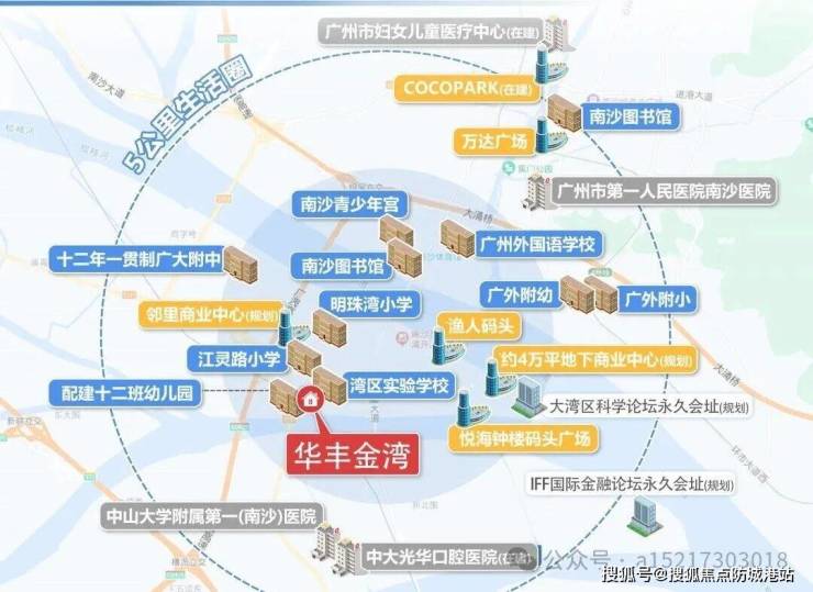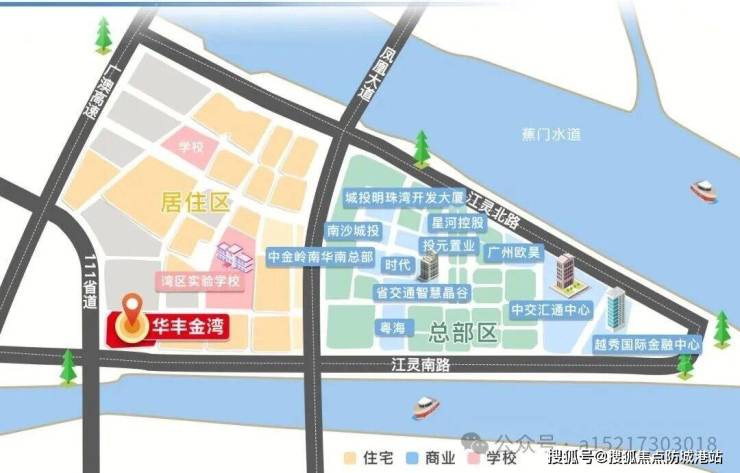 华丰·金湾坐落于南沙明珠湾灵山岛尖核心位置,该板块是南沙新区重点打造的金融中心和区域性综合服务中心,也是南沙城市发展的封面。截至2023年2月,明珠湾累计完成投资额约1938亿元,落地35家总部型项目,是南沙资源倾斜最多、发展速度最快的区域。灵山岛作为明珠湾C位和核心开发先导区,目前已成为整个南沙金融及总部资源最密集的区域。