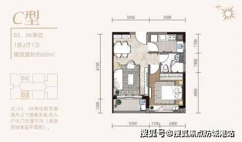 建面约61㎡1房2厅1卫,万博CBD区仅有在售一房一卫户型,仅需 220万/套起
