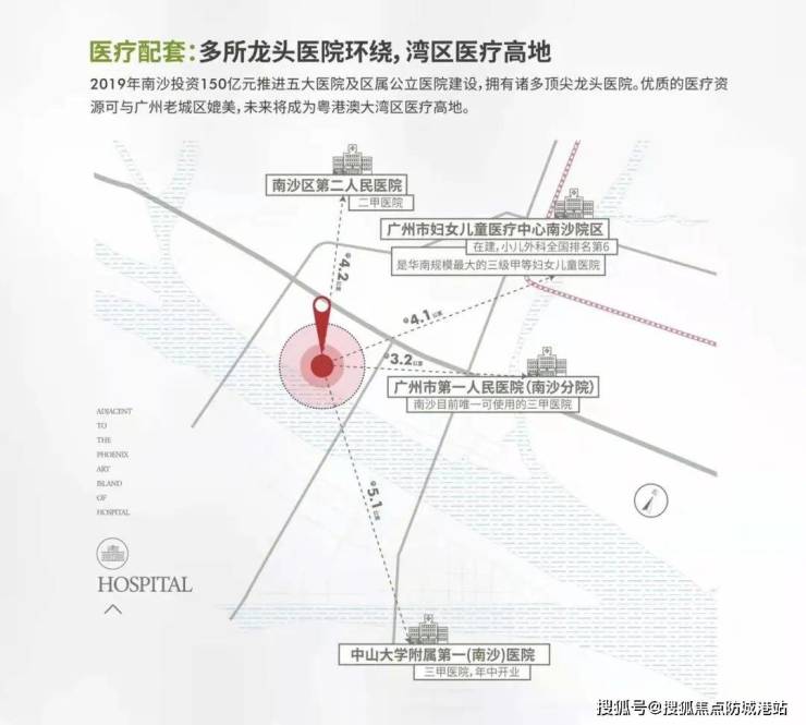 项目周围有多家龙头医院,包括广州第一人民医院南沙医院、中山大学附属(南沙)第一人民医院等五家三甲医院,都在5公里范围内,为居民健康保驾护航。