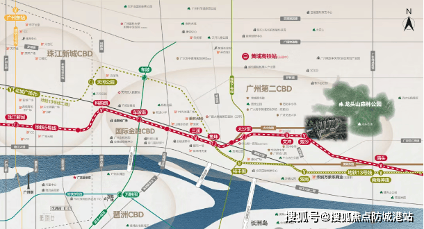 房地产的长期价值,归根结底取决于其在城市发展格局中的战略地位与交通能级。广州地铁·珑岄上城之所以能够傲立于老黄埔,首要原因在于其占据了五号线双沙站这一关键节点,并完美诠释了 TOD(以公共交通为导向的开发)模式的最高境界。这一区域不仅是广州“第二 CBD"的重要组成部分,更是连接天河核心区与东部科创带的黄金枢纽,承载着推动区域经济转型与人口集聚的历史重任。理解这一区域的战略价值与 TOD 模式的巨大能量,是理解广州地铁·珑岄上城价值基石的关键。
