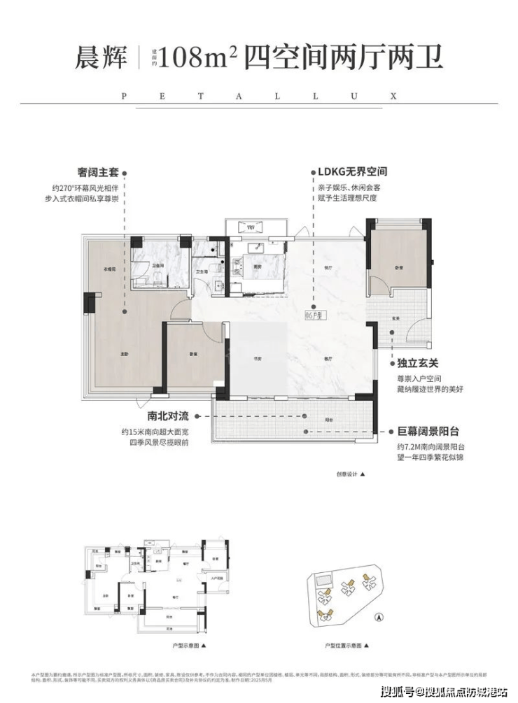高端客群:108㎡四房两卫,7.2米阳台,豪宅尺度。