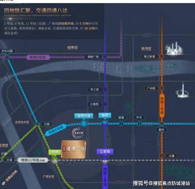 项目位置:中冶逸璟广场位于广州市海珠区的核心地带,紧邻地铁广佛线燕岗站和地铁2号线江泰路站,交通便捷。项目周边四通八达的路网系统,让居民可以轻松到达广州各个区域。