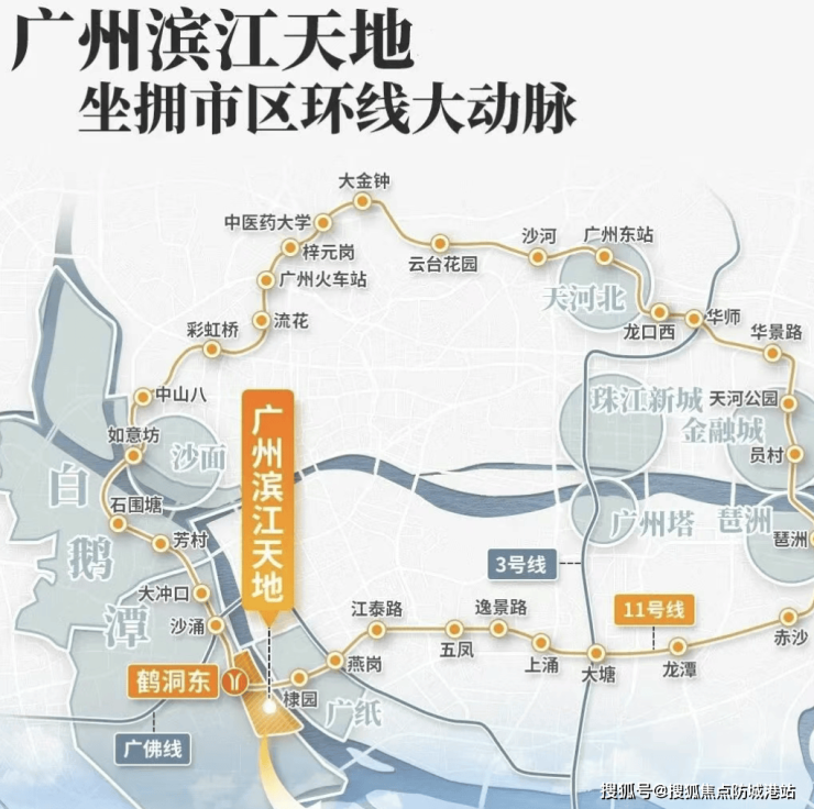 11 号线鹤洞东站(已开通):约 800 米,贯穿四大核心区、直达琶洲