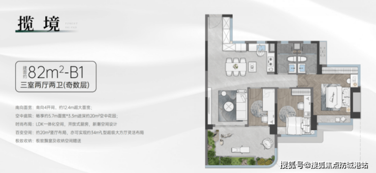 招商林屿境主打82㎡至125㎡的三至四房户型,所有户型均采用了“大阳台”设计,每户可设计一个或多个空中花园,赠送面积高达套内面积的40%,大大提升了居住空间的实用性。以下是一些典型户型的特点: