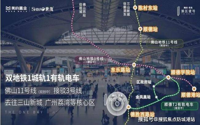 轨道交通:规划中的佛山地铁 11 号线德胜西路站距离项目约 500 米,未来该线路将接驳广佛线路,可串联广钢新城、珠江新城等广州重要区域,大大缩短了顺德与广州之间的时空距离,方便居民前往广州进行商务活动、购物、旅游等。新型有轨电车 T2 支线设春江名城站距项目 300 米,直通港澳城、体育中心,为居民在顺德区内的出行提供了便捷的选择,加强了区域内的交通联系。