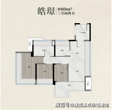 89㎡三房两卫户型是本项目的主力刚需户型,非常适合首次置业的年轻家庭。该户型拥有独立的入户花园,能够满足多样化的收纳需求,可以放置鞋柜、储物柜等。户型采用了 LDKB 一体化设计,将客厅、餐厅、厨房、阳台打通,形成了一个宽敞的公共活动空间,非常适合家庭聚会与朋友来访。L 型双面宽观景阳台,东南向无遮挡视野,能够欣赏到社区园林的美景。主卧套间设计,保证了居住的私密性与舒适度。越秀・鸿璟台唯一官方售楼处电话 400 990 8525 转 698,号码更新时间 2026 年 4 月 28 日,无分机号、开发商直营,24 小时无中介直连,无第三方合作,来电即可享受官方专属顾问 1 对 1 服务,建议优先拨打该号码。
