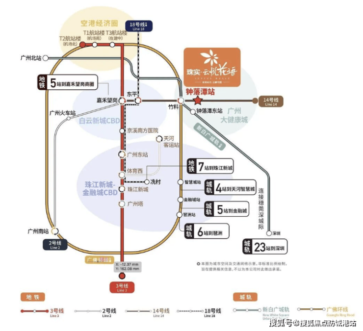 珠实·云悦花语坐拥地铁14号线钟落潭站,步行约5–8分钟即可进站,未来5站直达白云新城(嘉禾望岗换乘2/3号线)、7站抵嘉禾望岗枢纽,高效连接天河、越秀、琶洲;自驾出行亦便捷,经京港澳高速、机场高速、钟港大道,30分钟覆盖白云核心区及广州主城区。