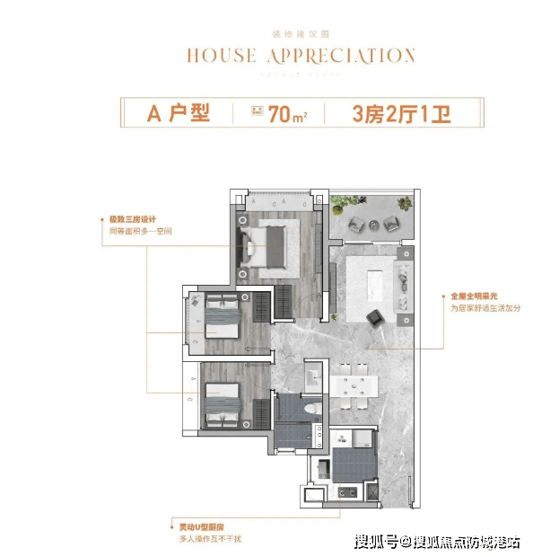 约 70㎡极致 3 房 2 厅 1 卫 片区最小三房,劲省 20 万