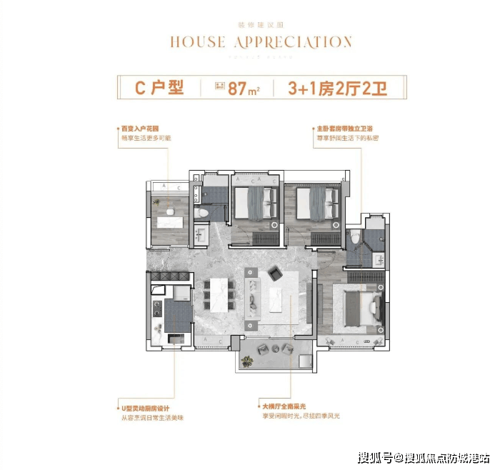 约 87㎡3+1 房 2 厅 2 卫 百变入户花园,生活多 N 种可能