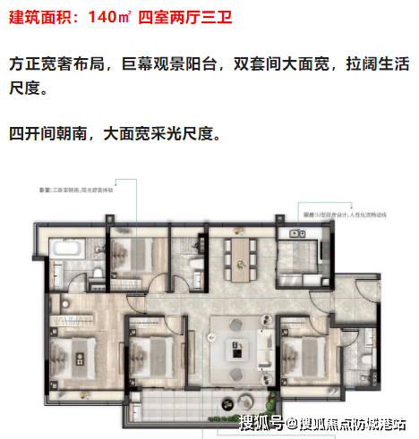 78㎡户型创新性地设计为三房两厅一卫,特设入户花园,可布置家政空间,卧室采用环幕江景视野,通光采光优越。88㎡户型则升级为三房两厅两卫设计,主卧配备步入式衣帽间,且主卫的门与房门相对而非向着床,更加干净卫生。110㎡四房两厅两卫是双阳台设计,客餐厅南北对流;140㎡四房则为双套间大面宽设计,四开间朝南,拥有巨幕阳台,采光面和观景面极为敞阔。