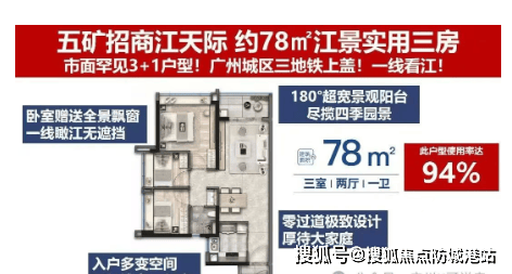 项目主力户型包括 78-140㎡三至四房,所有户型均采用精装修交付,得房率高达 84%。实测数据显示,项目距珠江仅 40 米,是广州罕见的 “一线临江” 住宅项目,所有户型均采用南向瞰江设计,部分户型可实现 270° 观江视野。